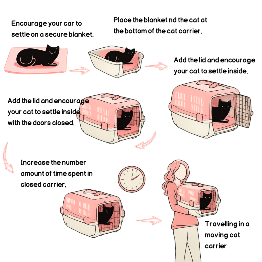 Training your cat to enjoy their carrier takes time, but it is possible. Here is a simple process that helps build comfort gradually.